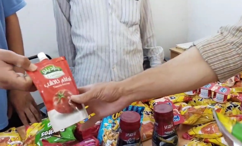 وتم ضبط عدد ٥٧ كيس بسبوسة و١٥ علبة زبادي وبسكويت أطفال بمبو ودوريتوس وشيتوسللأطفال وكاتشب وبرطمانات عسل اسود وأنواع بسكويت مختلفة جميعها منتهية الصلاحية مما يؤثر علي صحة المواطنين.