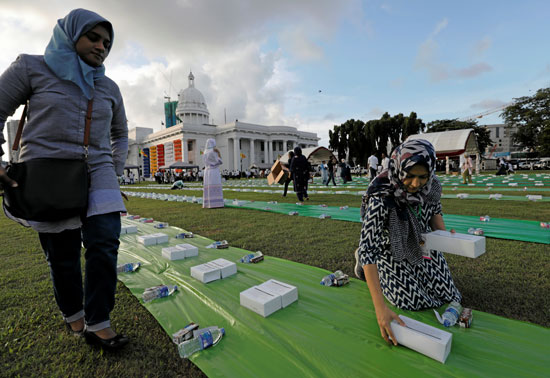 وسط حراسات أمنية، نظم المئات فى سريلانكا، إفطار جماعى كبير فى العاصمة كولومبو، وأدى قوات الأمن التحية العسكرية استعدادا للإفطار .