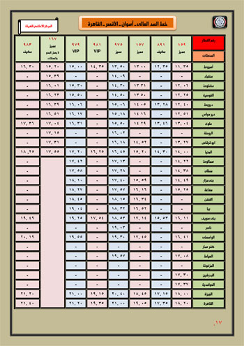 السكة الحديد تنشر جداول قطارات الوجهين القبلي والبحري (صور)