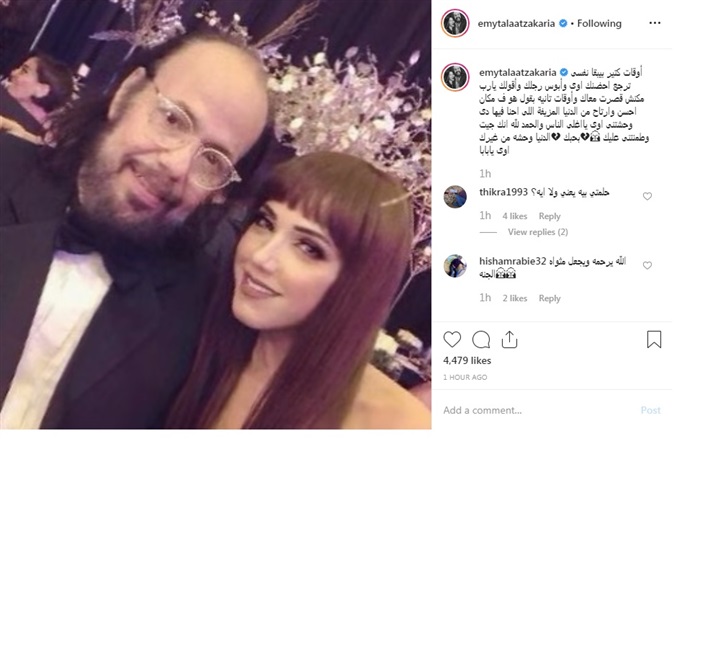شاركت الفنانة إيمي طلعت زكريا، متابعي صفحتها الرسمية بموقع "إنستجرام"، بصورة تجمعها بوالدها الفنان الراحل طلعت زكريا.