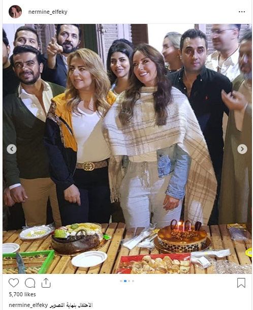 ونشرت نرمين الفقي صورًا لها تجمعها بأبطال العمل خلال الاحتفال بانتهاء التصوير، عبر حسابها على "إنستجرام"، معلقة: "الاحتفال بانتهاء التصوير".