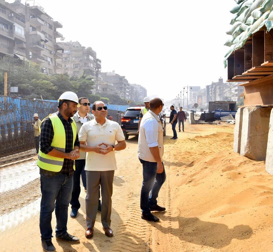 السيسي يتفقد سير الأعمال بمشروعات الطرق بمصر الجديدة (فيديو صور)