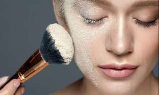 للحصول على مكياج يدوم طول اليوم، يتم وضع طبقة من بودرة التلك على الوجه قبل وضع المكياج.