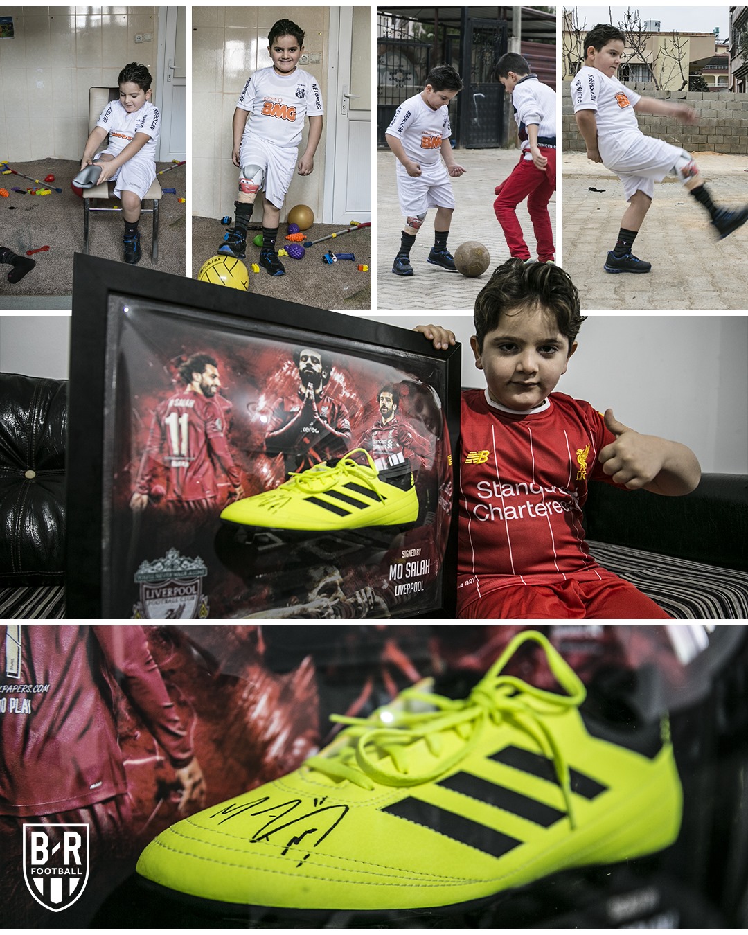 شاهد.. هدية خاصة من محمد صلاح لطفل فقد ساقه في حرب سوريا